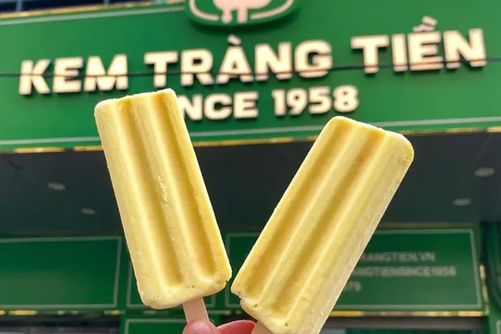 Trang Tien Ice Cream – 35 Trang Tien, Hoan Kiem District. This long-standing brand offers traditional flavors such as young green rice, mung beans, and coconut milk, which evoke a nostalgic taste of Hanoi.